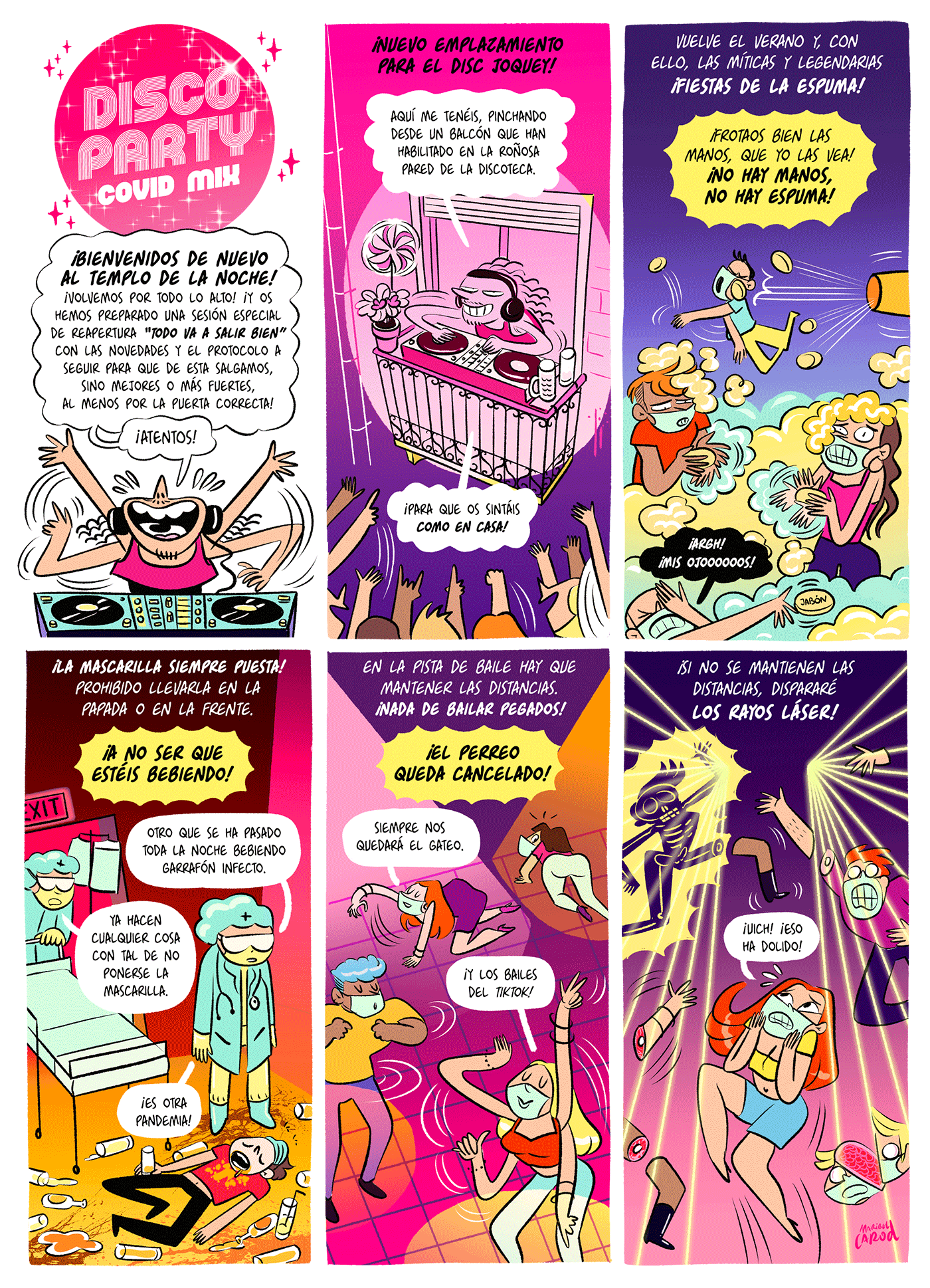 Comic about anti-COVID measures in discotheques during the pandemic.